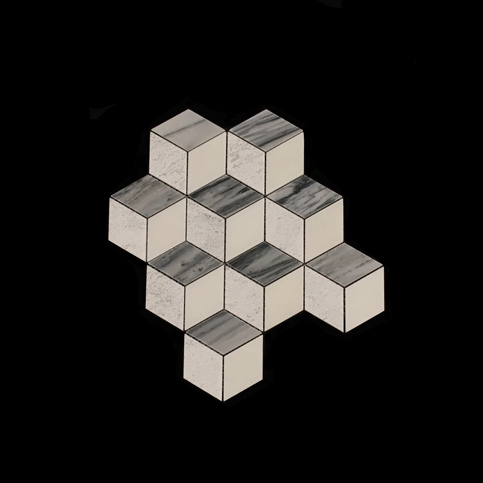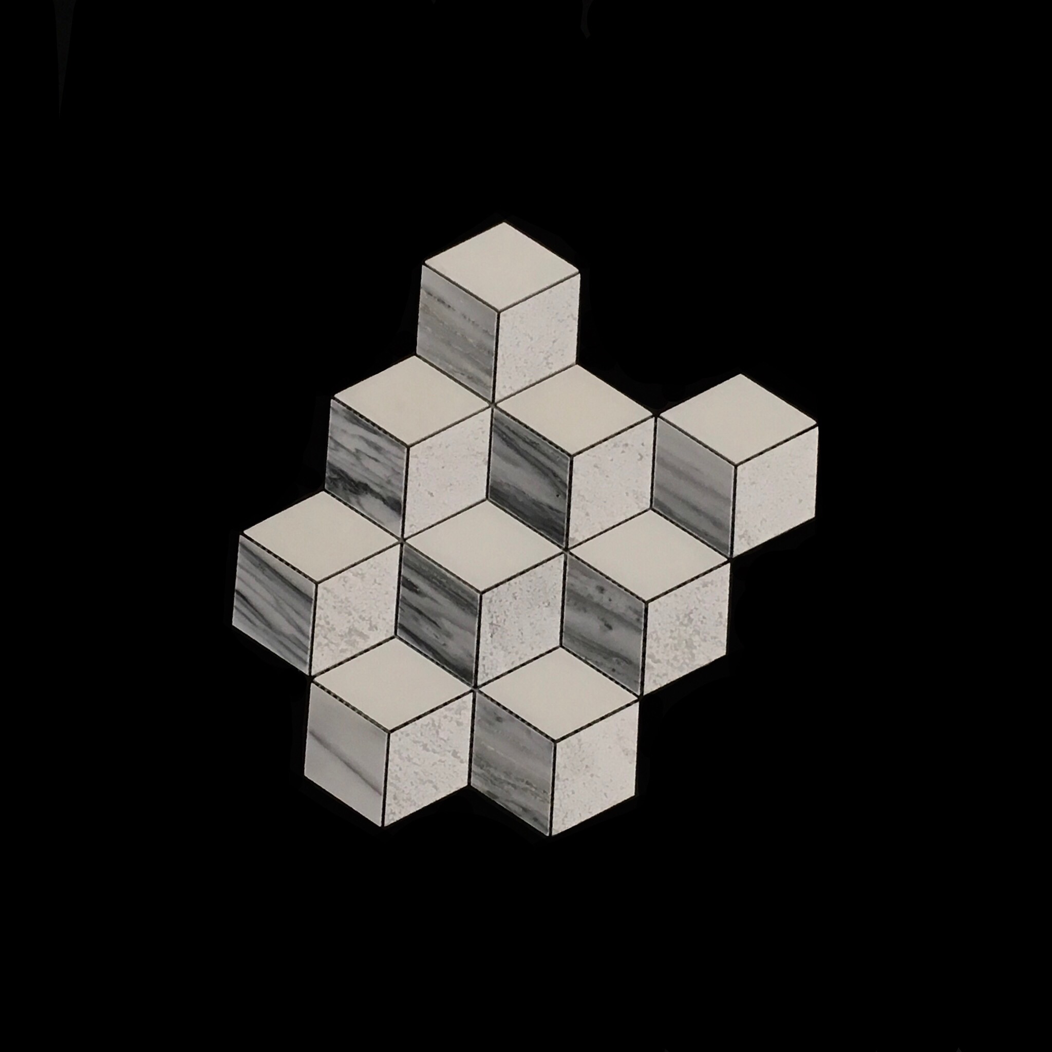 3D Block Three Tone marble has a polished and bush hammered finish for a smooth yet ridged combination. Coming in a Sichuan white and Bardiglio grey with black veins, this contrast is great for a light modern appeal.