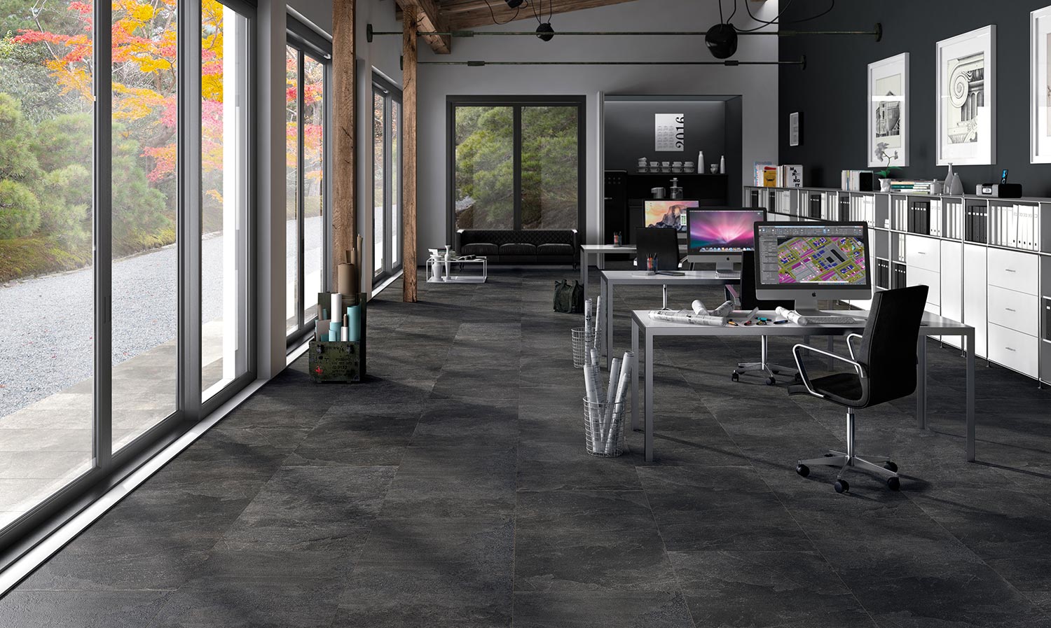 The Black Board porcelain tile of the Pietre Naturali collection displays elegant shades and textures in rich black color. Apply this unique personality to your next design or architectural project.