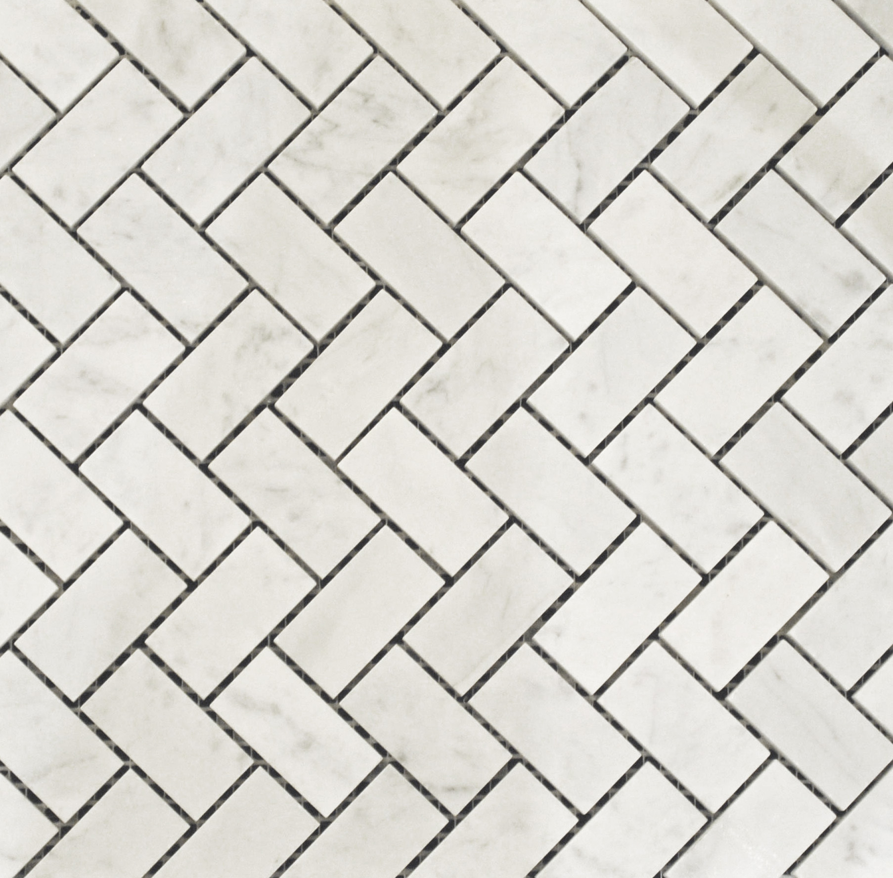 Carrara 1 Inch Herringbone marble from Italy has a nice white color with dark grey undertones (carrara white). It also has a polished finish to give this marble a glossy reflection.