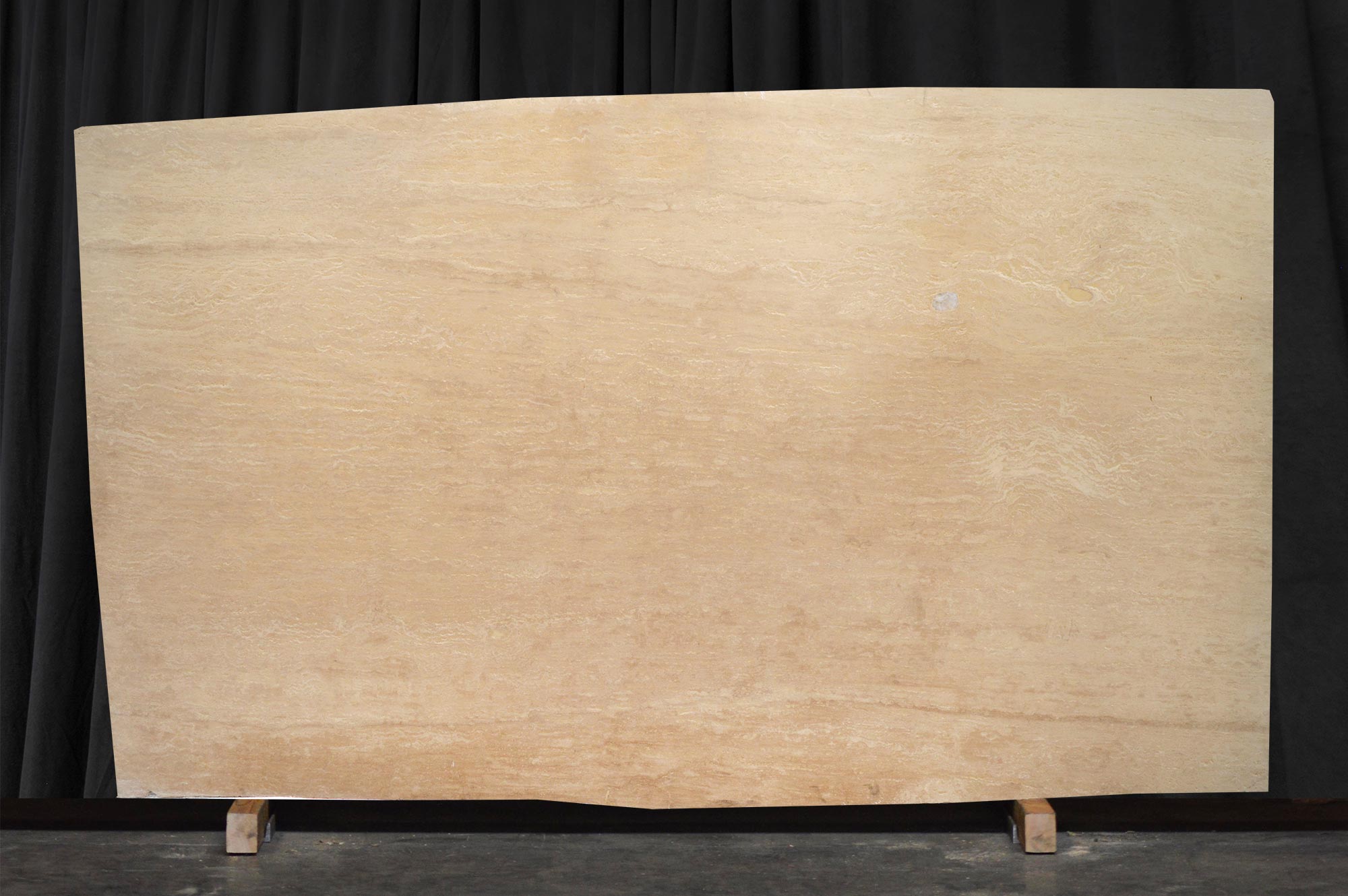 Crema Turco Premium is a vein cut light travertine slab for your next design or architecture project. Subtle swirling vein movements and calcite details.