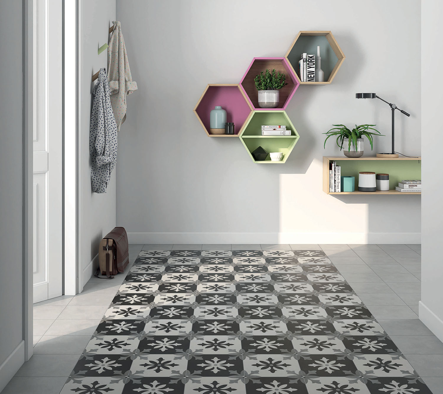 Adorn your next interior or exterior project with the porcelain tile Degas Negro. This ceramic line features artistic mosaics with creative and unique colors and patterns.