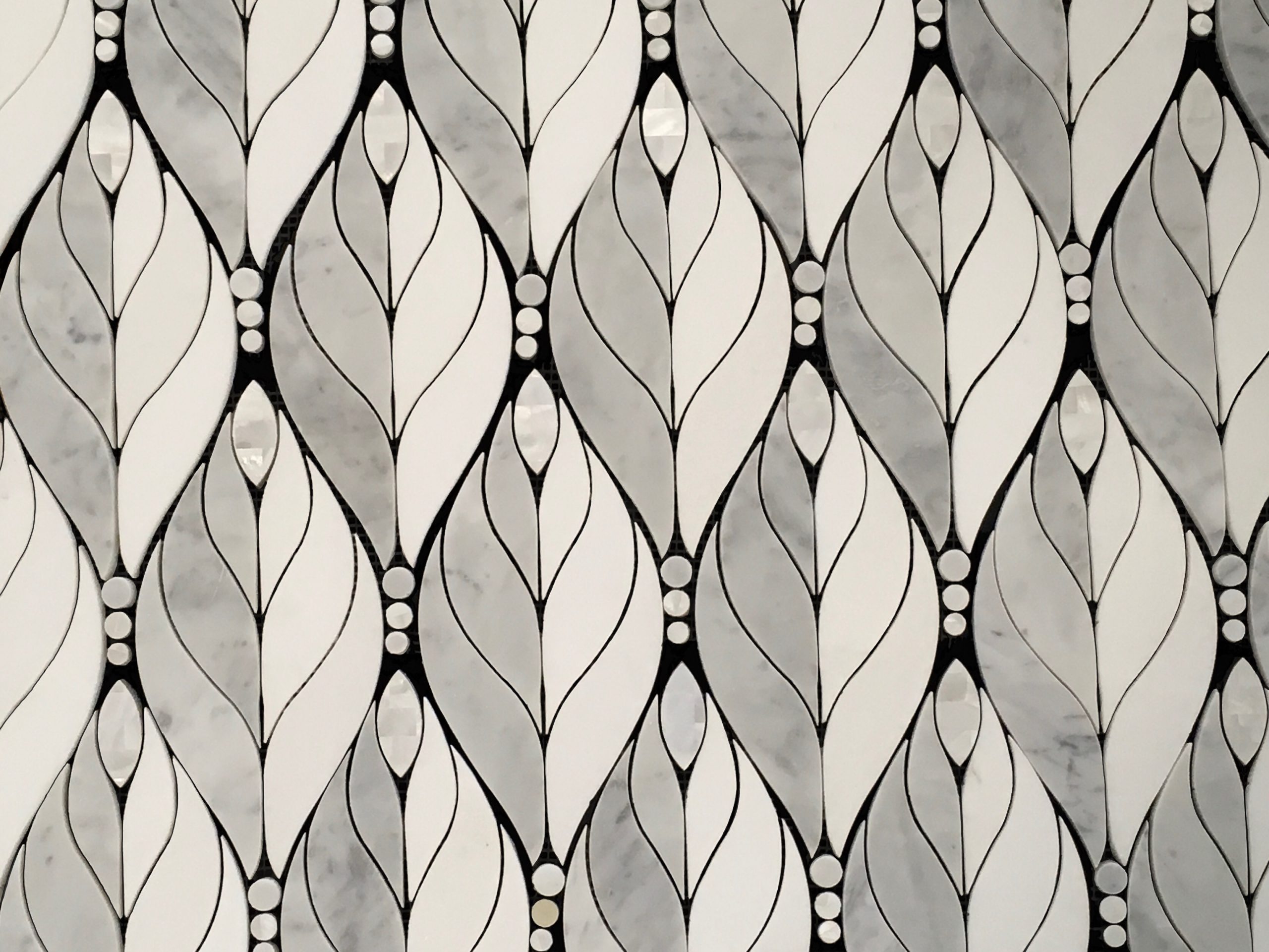 Mother Of Peacock marble comes in thassos and carrara white for a very light modern appeal. This mosaic also has a polished finish for a shiny gleam when reflected against light.