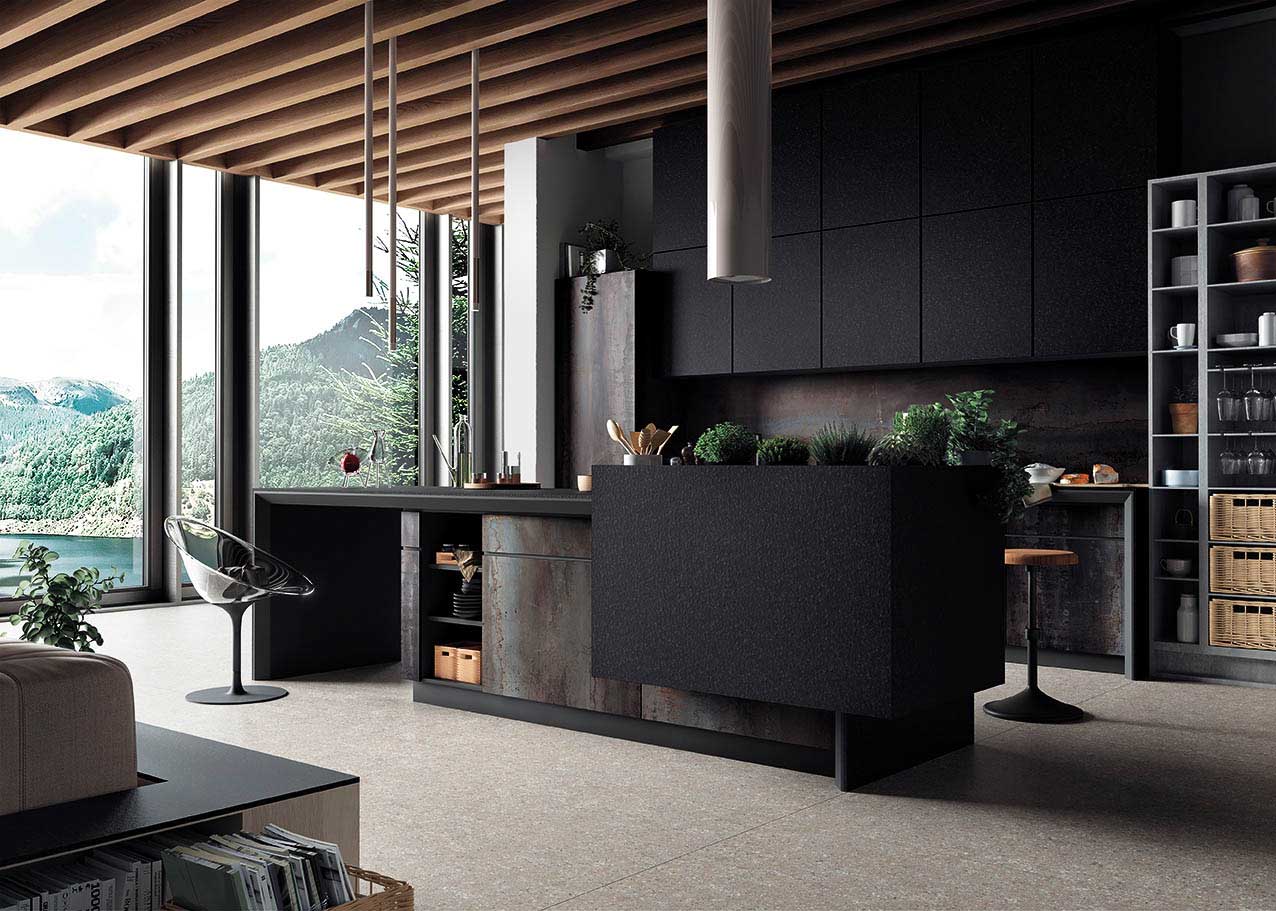 Nero Granite is a gorgeous, solid black porcelain slab, perfect for a minimal but sleek look. Turn any room into a sophisticated setting with this porcelain surface by Atlas Concorde.