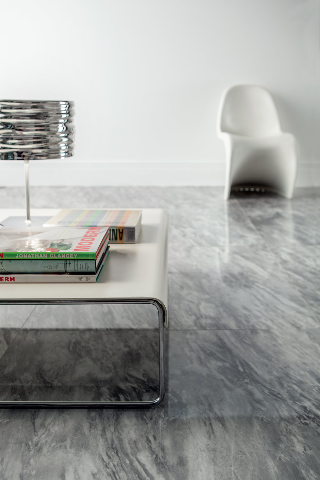 Ocean Grey ceramic tile sees silver wave movements across the material for an alluring aesthetic. Ideal for interior or exterior floor and wall applications.