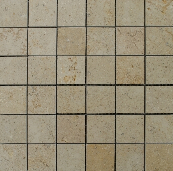Sandy Creek 2×2 Honed limestone comes in a cream color with brown for contrast. This mosaic also has a honed finish for a clean matte appearance.