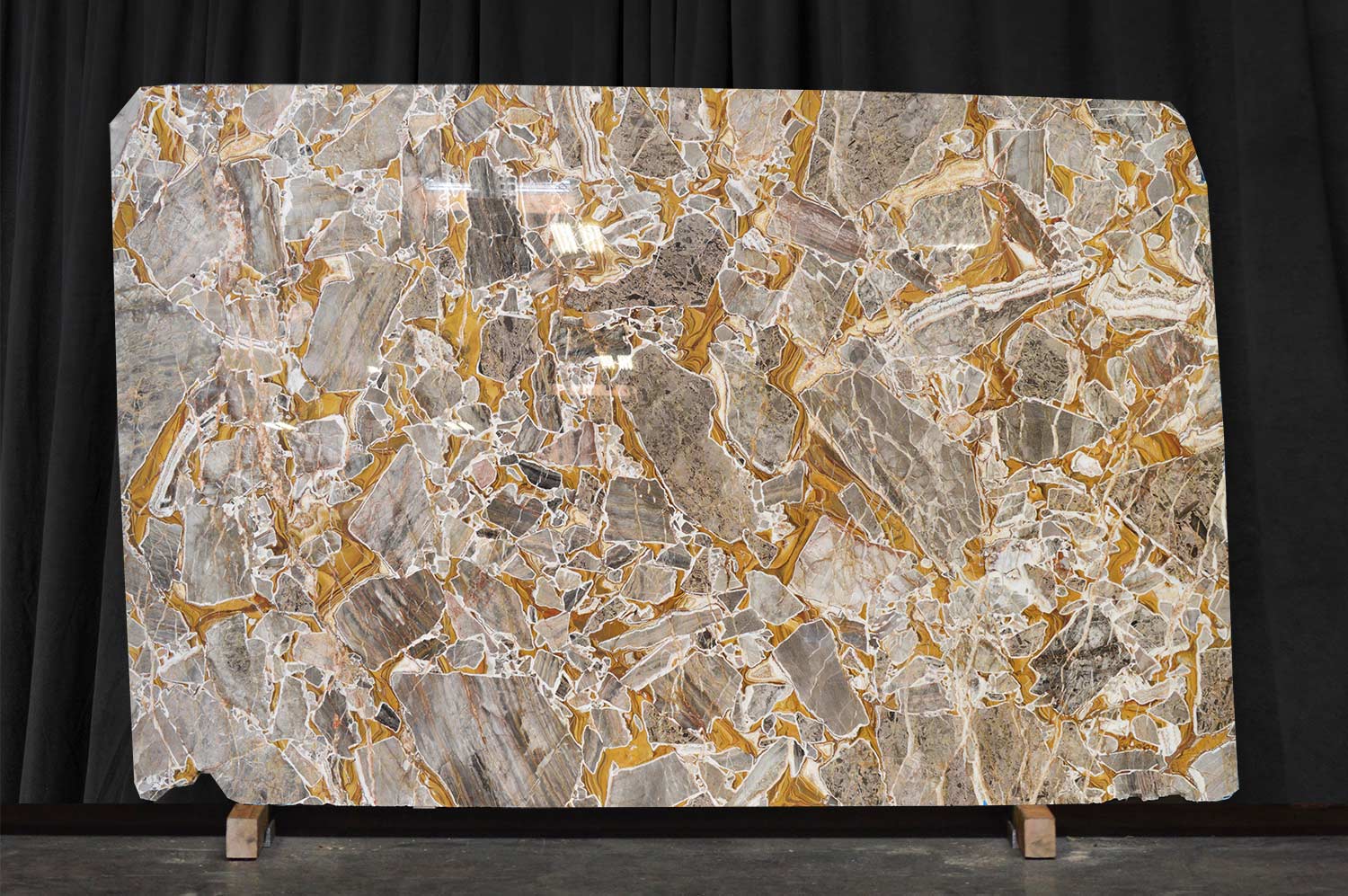 The Vango Gold marble slab is the ideal solution for designers, architects, and contractors. A unique stone look with beautiful colors and details.